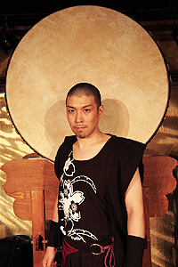 この当時は、プロを目指すとはいえ、どうやって活動を展開して行くかちょうど悩んでいた時だったので、この人に「よし、使える」って思われたら、俺も将来あるかなと思えたろうし、「コイツ、使えねぇな」って思われたら、ある種、辞めるきっかけにもなるかなと思っていました。ここで踏ん切りをつけるか、さらに一歩踏み込むか、自分の中で線引きをつける覚悟で挑んだオーディションだったような気がします。 ここ一番の大勝負が来たって感じですね。 そうですね。それで英哲さんのところで見てもらって、結構厳しいことも言われたのですが、とりあえず「いきなり舞台には上げられないけど、手伝いながら勉強しなさい」と言ってくれて英哲風雲の会の仮メンバーになりました。 オーストラリアの太鼓の団体へ留学されたのはその後ですよね? 英哲さんがオーストラリアで公演をなさったとき、それに感銘を受けたオーストラリア人が「TAIKOZ(タイコーズ)」という和太鼓チームを結成していて、メンバーのほとんどがプロのパーカショニストという大変面白い和太鼓チームがあるのです。2002年にそこのメンバーに欠員がでて、日本人で即戦力になる人を探しているという話を聞いて是非行きたいと志願して行ったのがきっかけです。 パフォーマーとしての自信がつき始めた頃に、またチャンスが来たって感じなんですね。 そうです。ちょうど1年か2年ぐらい舞台でやらせてもらっていたぐらいですかね。経験も積ませてもらって、ちょっと自分にも自信が出てきたってところだったので、さらにそういうところで自分を試したかった。 打楽器に限らずオーケストラをやってる方っていうのはアプローチというか、バックグラウンドが全然違うわけですよね。クラシックの理論だとか、そういういろんな刺激っていうのはどうだったんですか? ![]() タイコーズのメンバーは子供の頃から英才教育を受けていて、クラシックとかそういうものにあまり刺激を感じなくなっているというか当たり前的な感じになっているようでした。その点、本来和太鼓は譜面なんて一切なかったもので、ガイドとなるのはいわゆる口伝ですね。言葉でドンドンドコドコ、ドンドンドコドコと教える。 「空気を読むって」って言葉があるじゃないですか。その思想っていうか概念が日本人ってすごくあると思うんですけど、そこの流れですね。人と合わせるっていう。 まさにそうです。 多分、西洋だとメトロノームがカチカチ鳴ってて、それに対して人間が心地よいものを研究してきて、何分の何ってところの拍でいくと気持良いってのが基本だったのが、和ってそういうのがなくて、自由にやってるんだけれども合ってくる。そこの部分ですよね。 そこに彼等は魅力を感じて。もしかしたら俺もそうだったのかなって事に気づかされたような気がします。何でもできちゃったっていうね。物覚えも悪いし、そんな運動神経も良くないし、勉強もできないのに何でできたかっていうと、そういうこともあったのかなって思ったりもしますね。 |